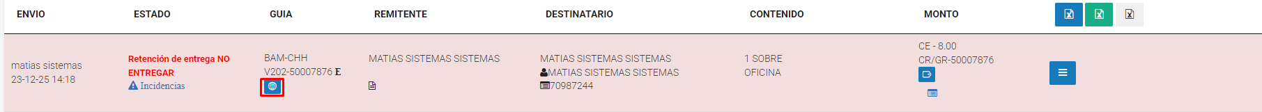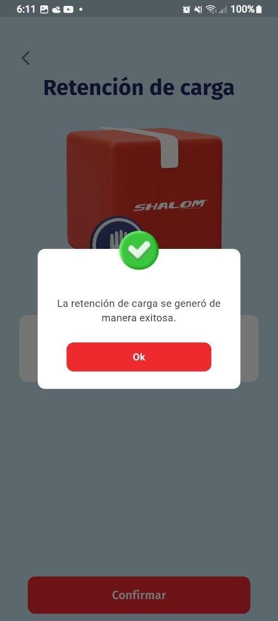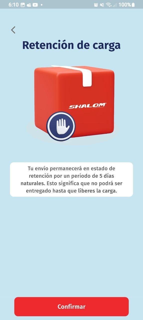 La retención de carga por el APP gestiona envíos registrados desde Shalom Pro, Caunter o la App.
