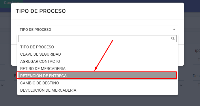 Ingresamos a la sección PROCESOS y encontraremos un sub menú de opciones, dentro ello se encuentra RETENCIÓN DE ENTREGA.