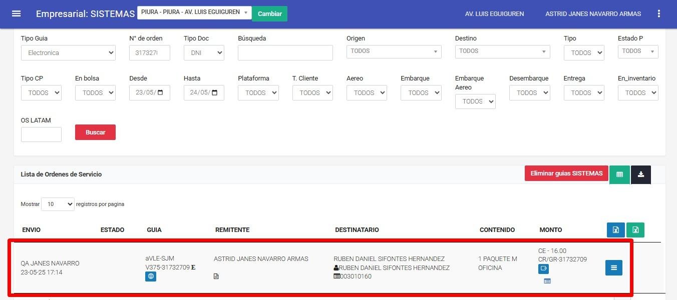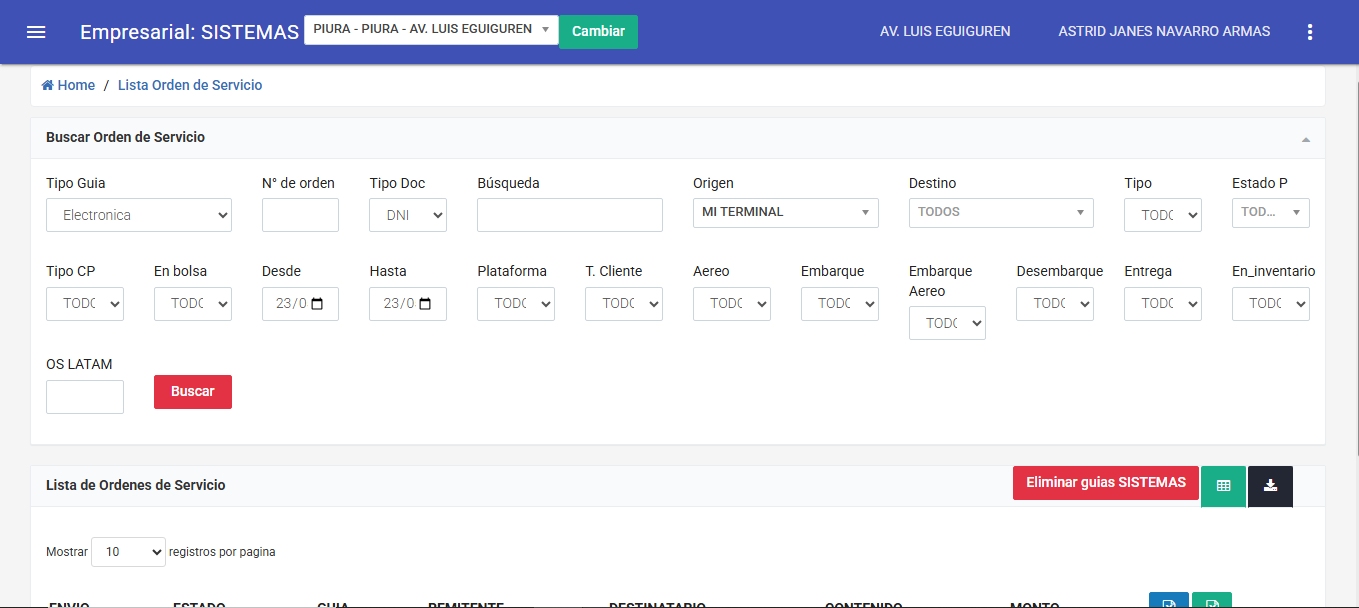 Ingresamos al sistema empresarial - LISTA ORDEN DE SERVICIO