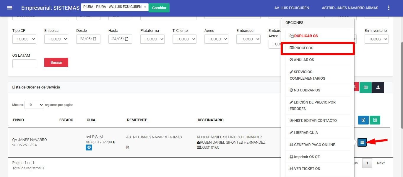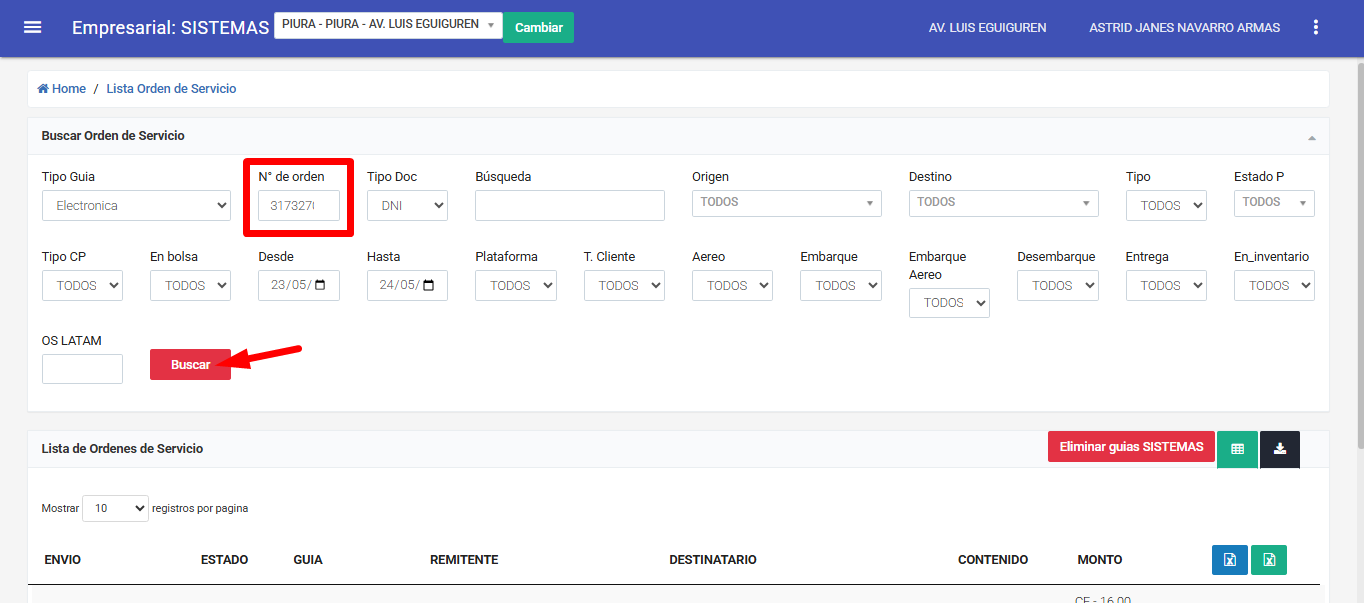 Ingresamos el N° de OS y pulsamos el botón buscar.