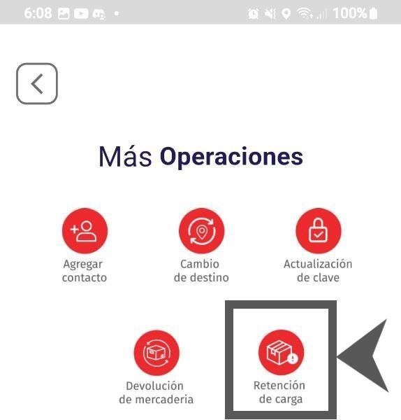 Ingresamos al APP SHALOM apartado más operaciones, luego nos dirigimos a la opción RETENCIÓN DE CARGA.