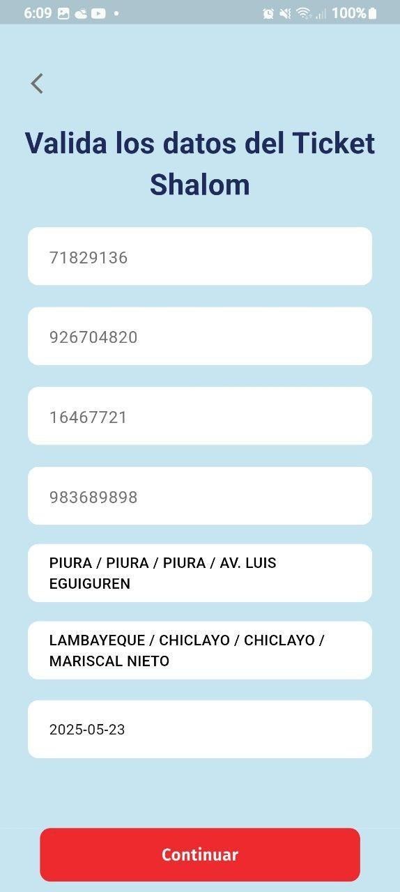 Es obligatorio validar los datos en el ticket Shalom para cada proceso.