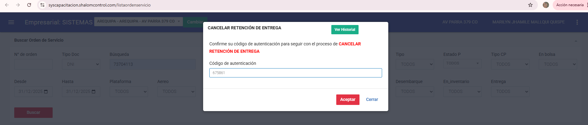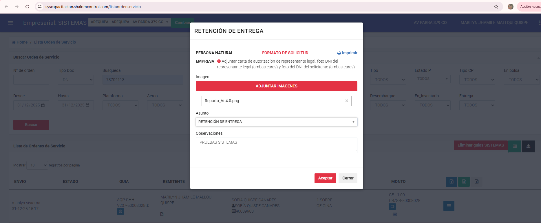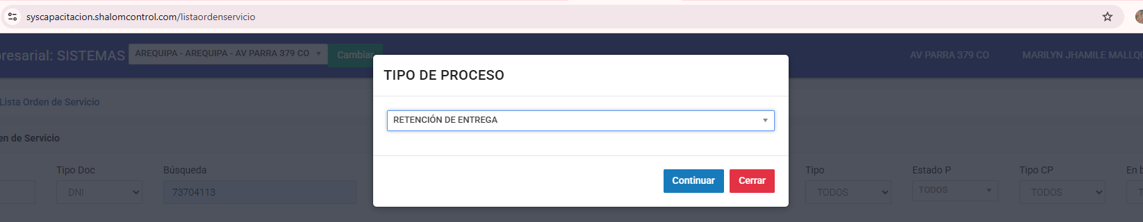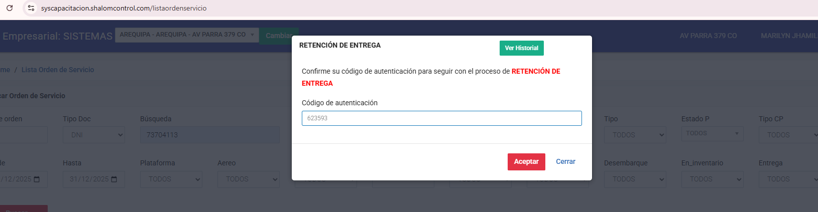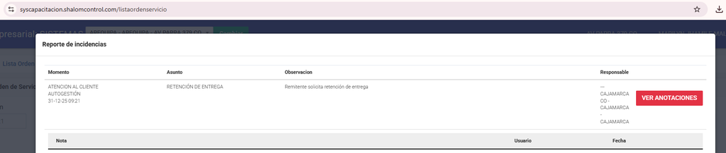 Lista orden de servicio: https://syscapacitacion.shalomcontrol.com/listaordenservicio