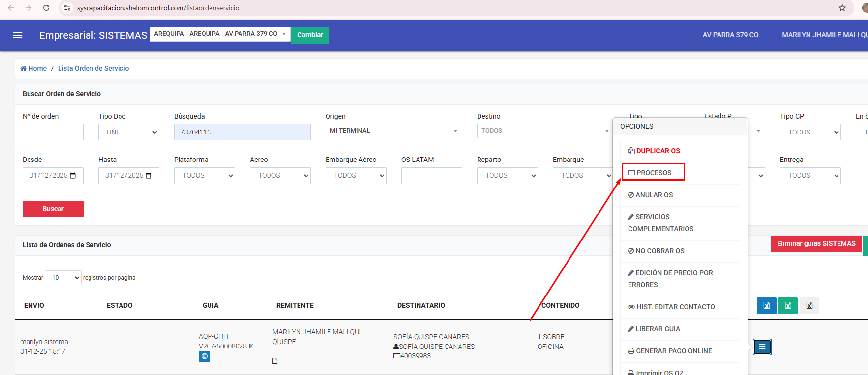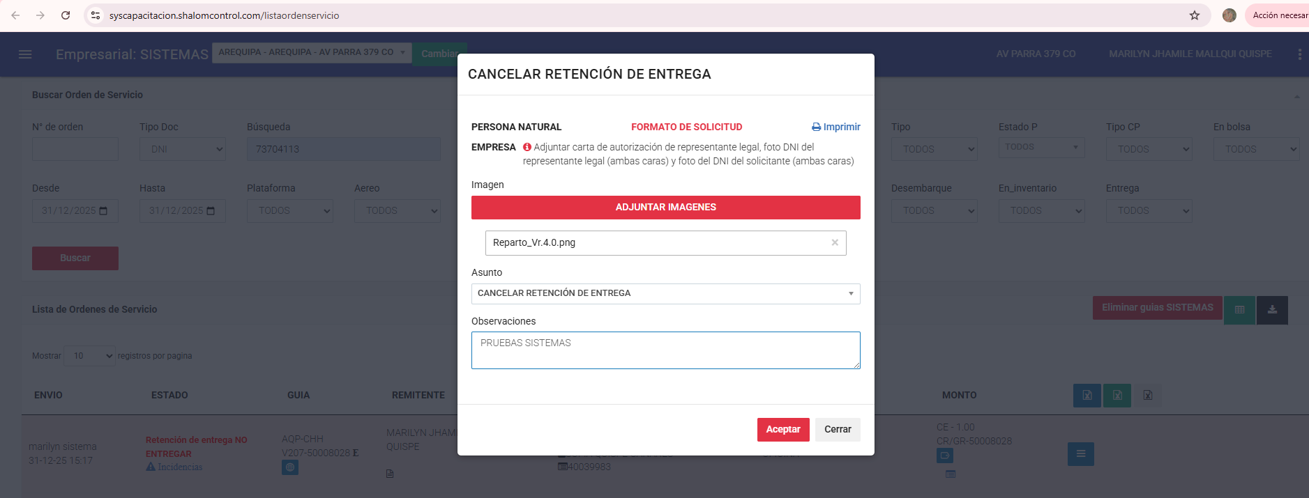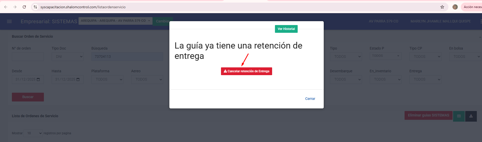 Lista orden de servicio: https://syscapacitacion.shalomcontrol.com/listaordenservicio