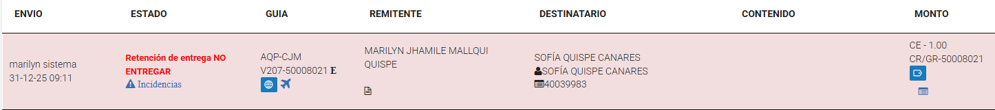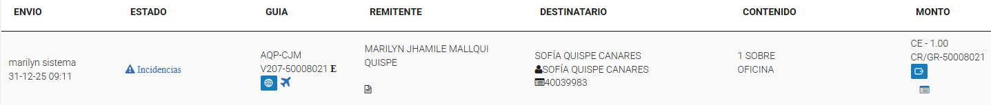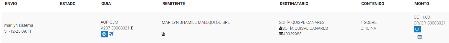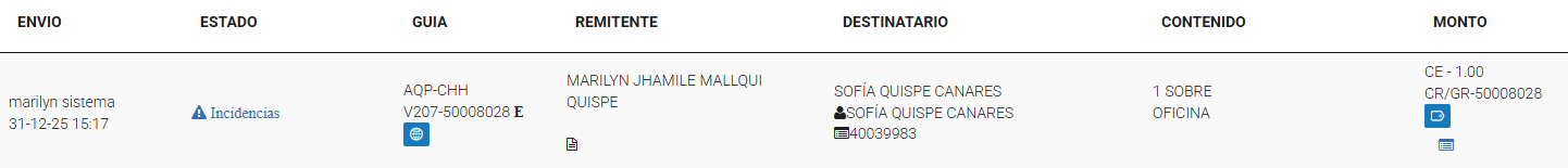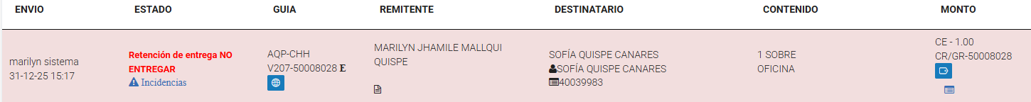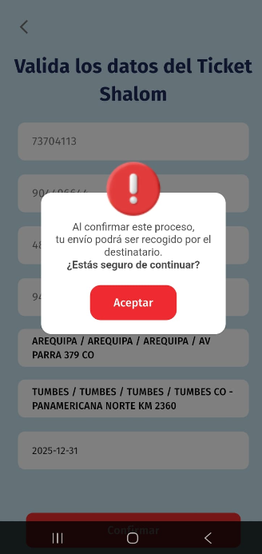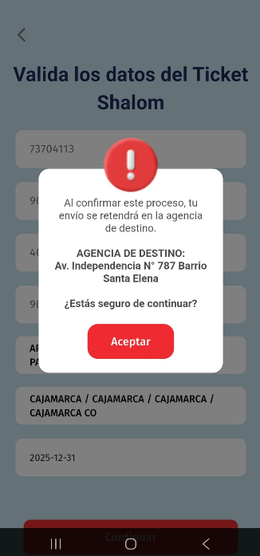 Sucursal u oficina operativa de Shalom encargada de la recepción, custodia, gestión, despacho y entrega de envíos, así como de la atención al cliente y control de los procesos logísticos.Entregado: