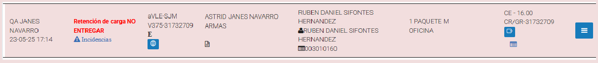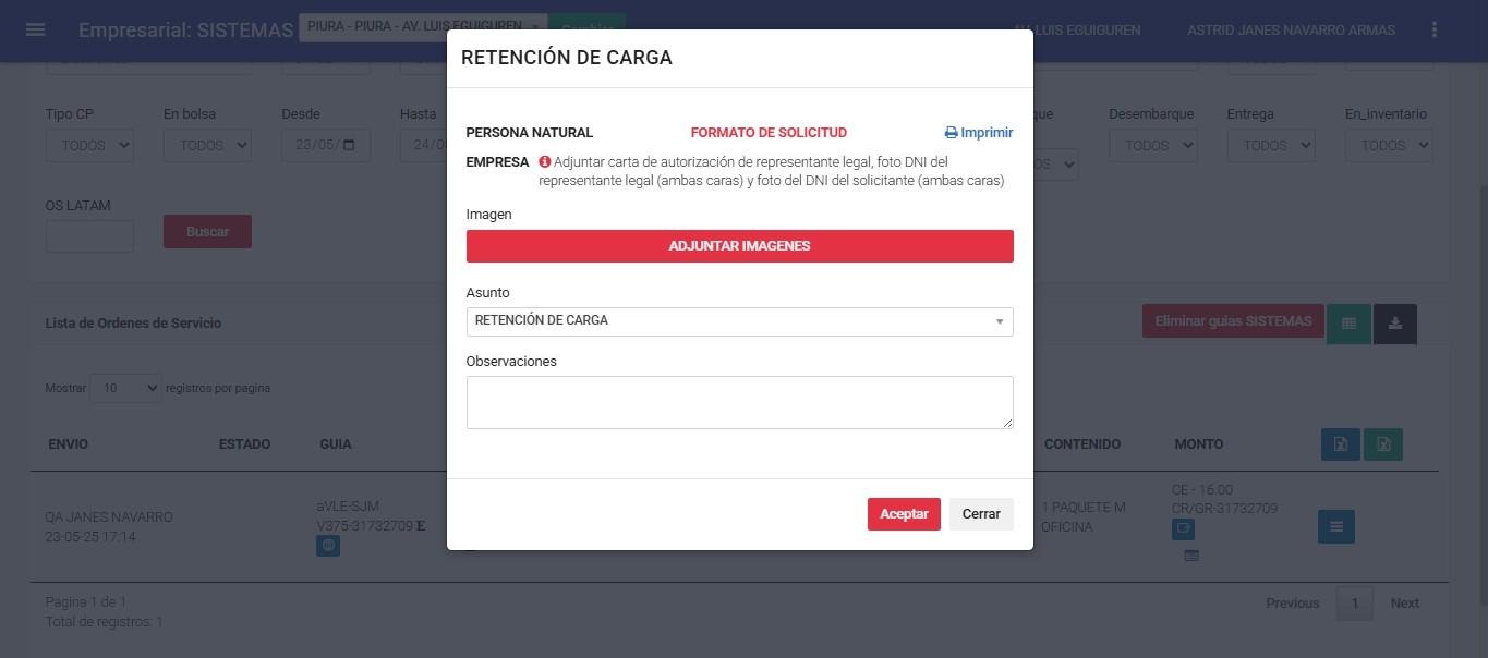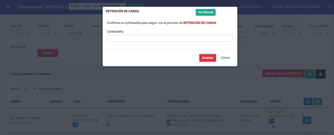 La retención de carga solo puede realizarlo la terminal de ORIGEN (EMPRESARIAL).