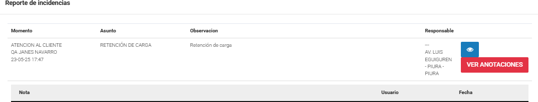 Se puede ver que muestra cómo incidencia, la información ingresada desde el modal de solicitud.
