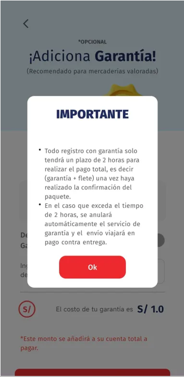 Generamos una OS desde el App de “Envia ya” y le añadimos el servicio especial “garantía”
