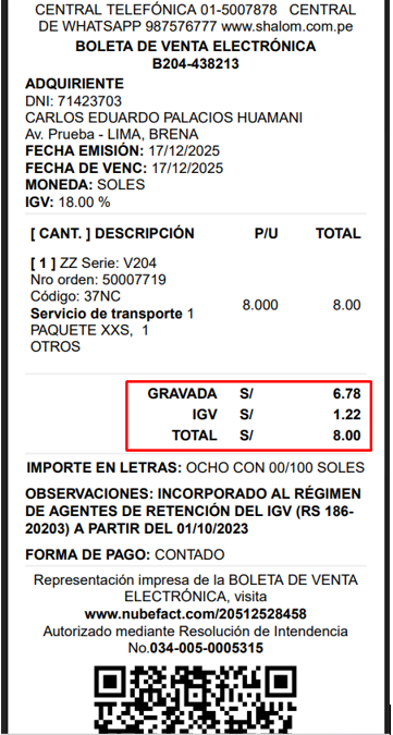 - NOTA: Se resalta que el monto por Cobro seguro no se apreciara en el comprobante como se muestra en la imagen