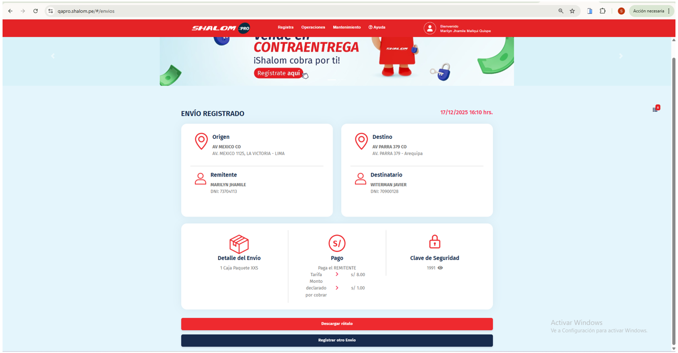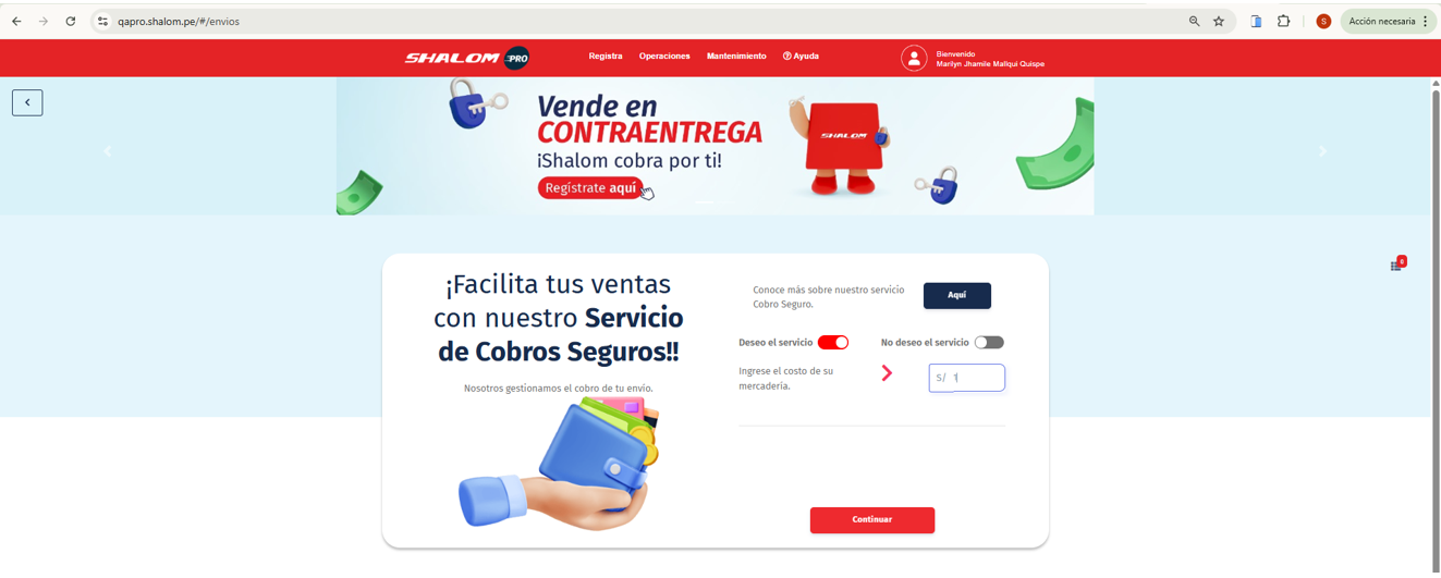 • Cobro Seguro = Shalom empresas, Shalom Pro