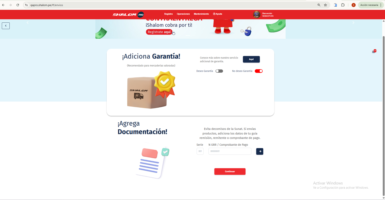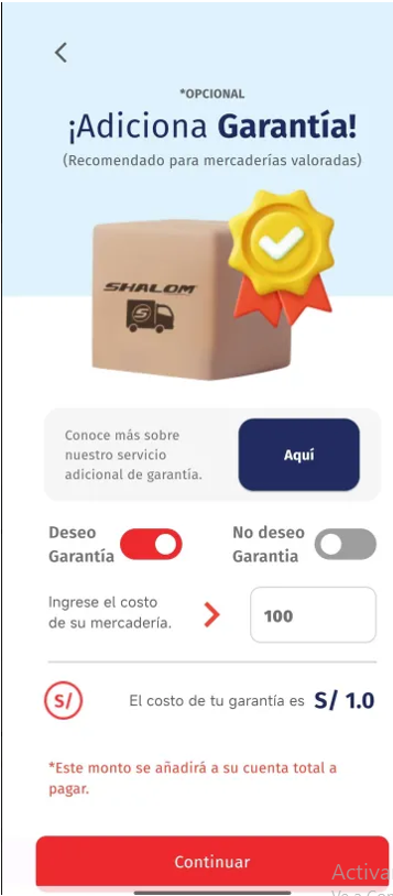 • Garantía = (Shalom Pro, Shalom Empresas)