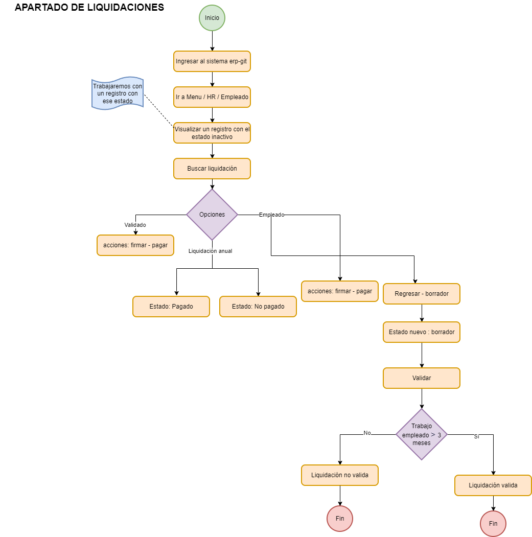 En primer lugar, para que podamos registrar una liquidación, nos fijamos si el empleado está inactivo, cuando el empleado tenga este estado, automáticamente se registra una liquidación.