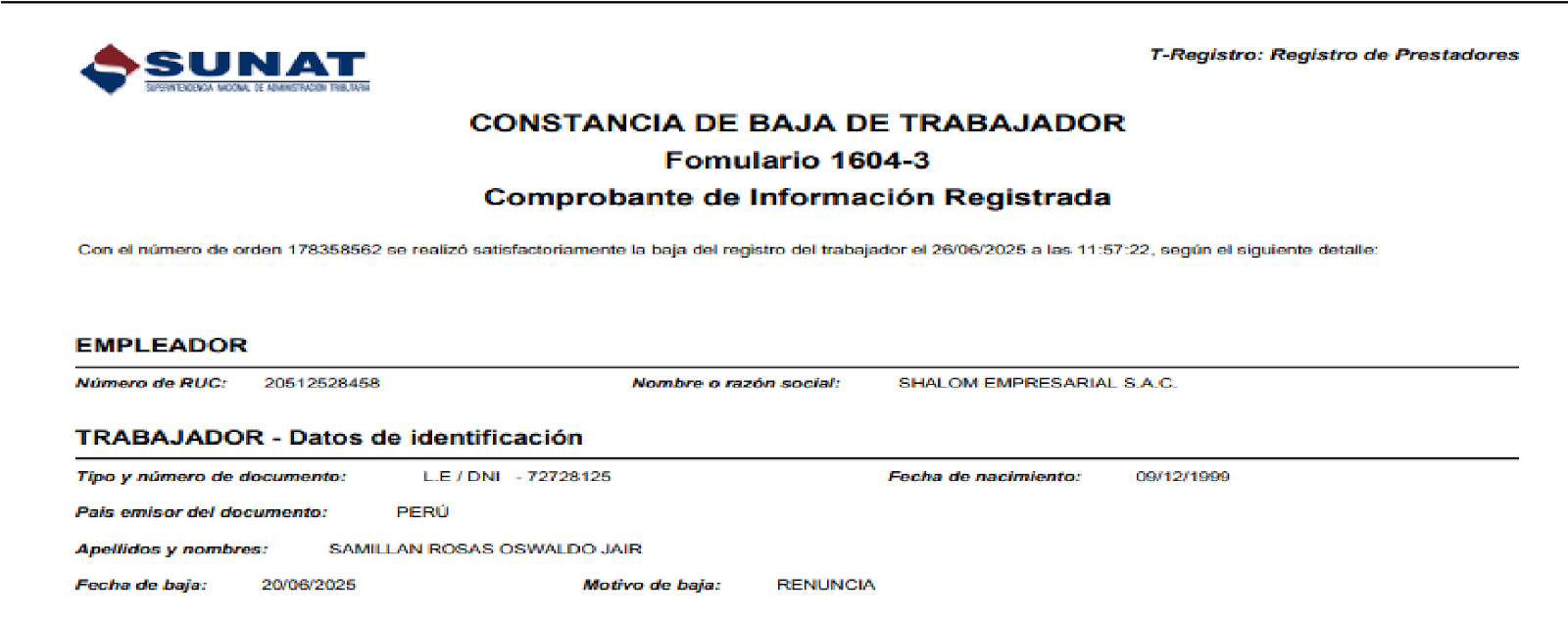 Apenas ingresemos, nos mostrará un pdf de la constancia de baja del trabajador.