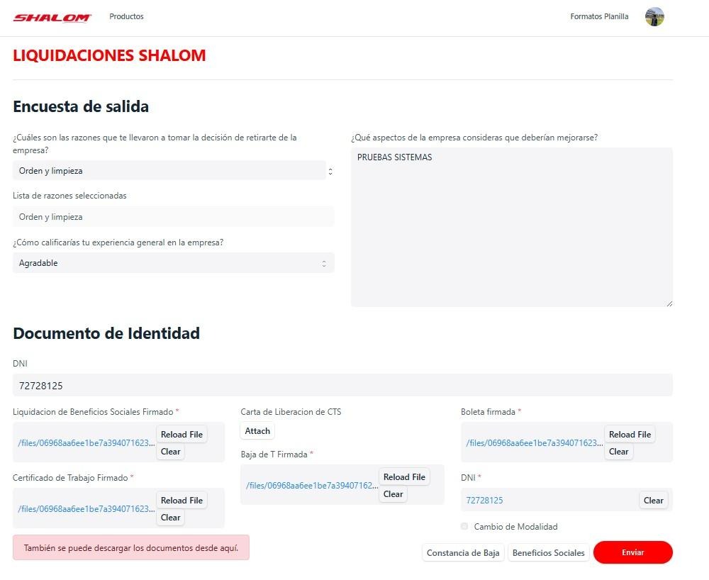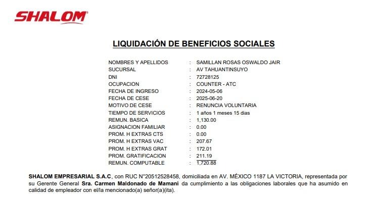 Y un PDF de la liquidación de beneficios sociales.