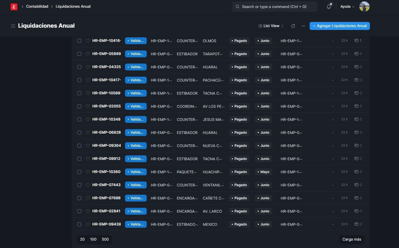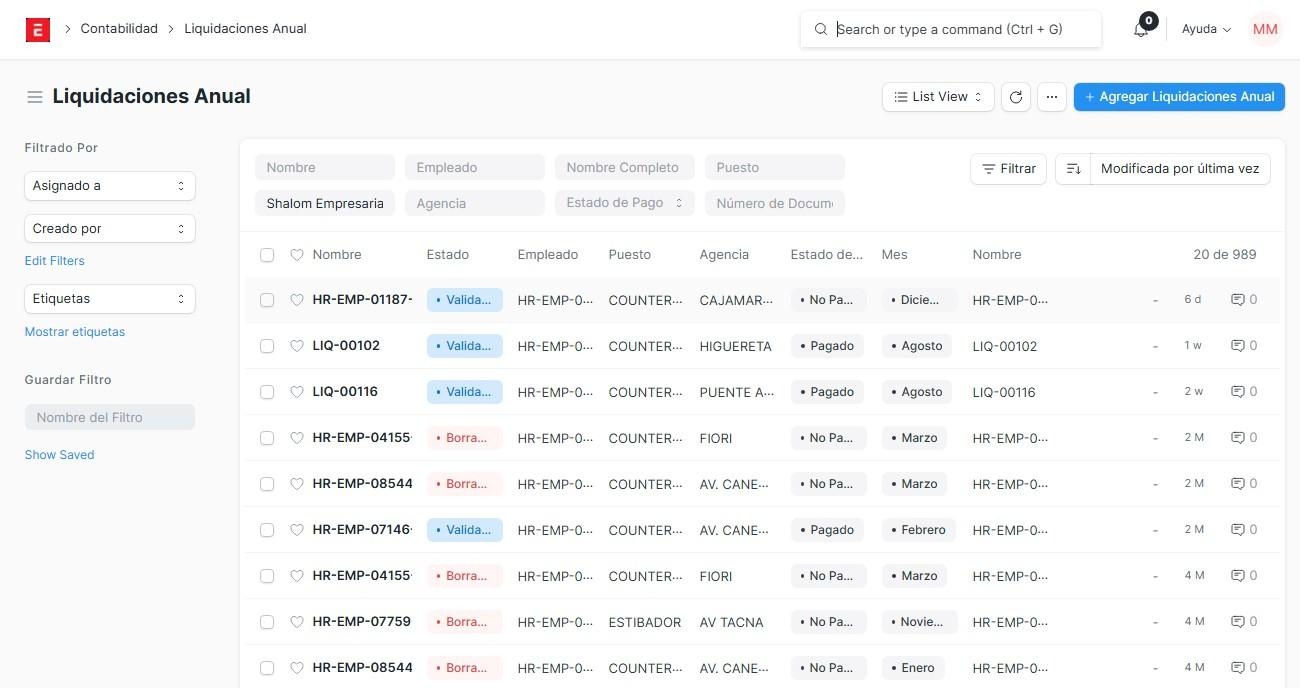 Liquidaciones anual