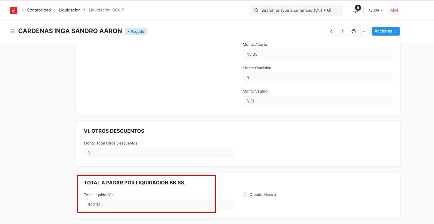 Y nos mostrará el total de liquidaciones en base al sueldo.