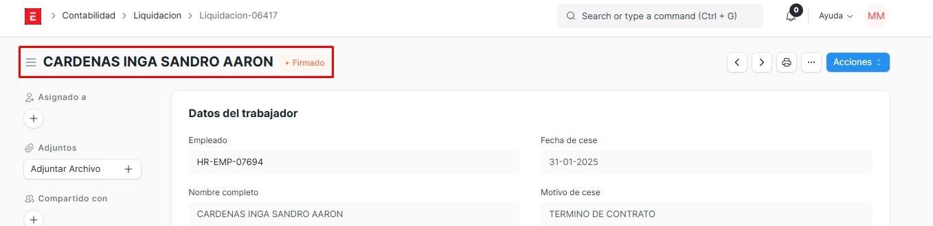 Observaremos que el estado se pasará a firmado.