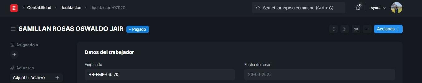 Liquidación: Es el cálculo y pago que realiza una empresa al trabajador cuando se termina la relación laboral. Incluye todos los conceptos pendientes por pagar.