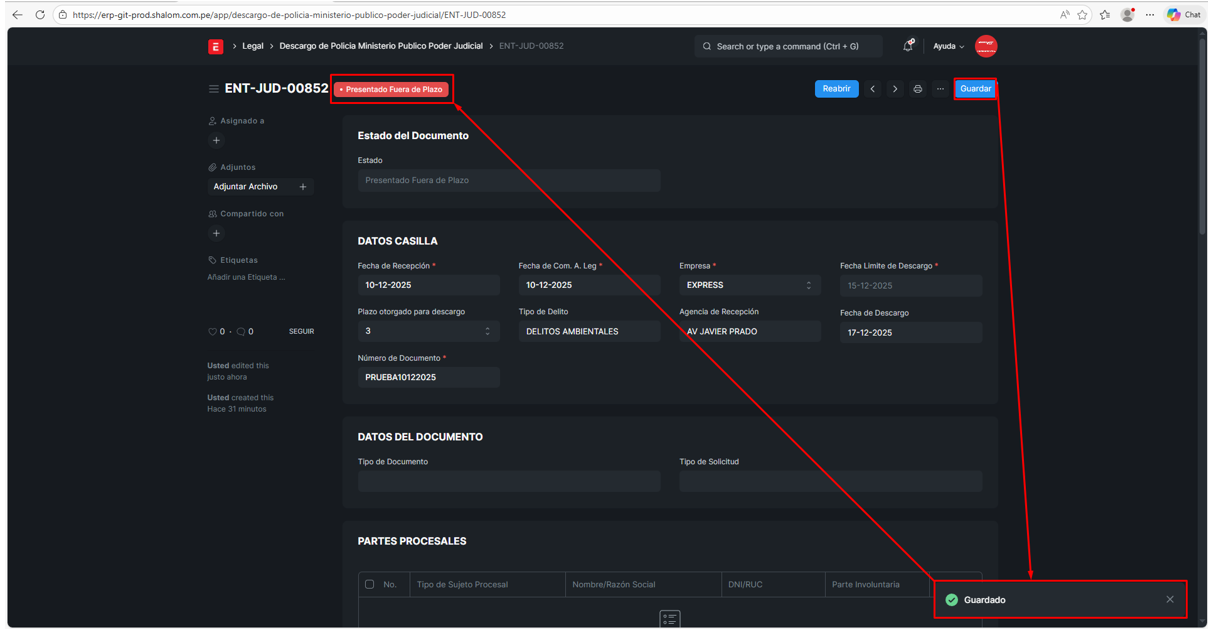 9. Para que se cumpla el flujo para llegar a Presentado Fuera de plazo