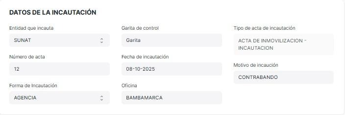 En Fecha de incautación se selecciona la fecha cuando ocurrió la incautación.