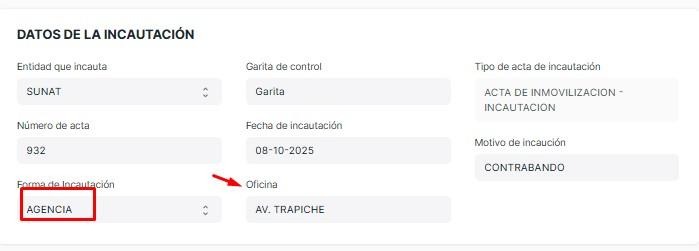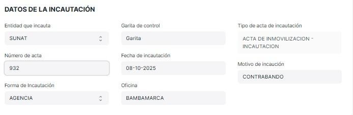 Según que opción se seleccione automáticamente aparecerá el tipo de acta de incautación.