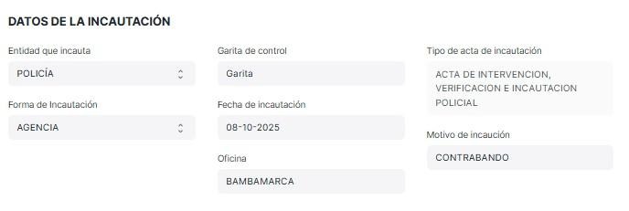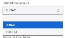 En la Entidad que incauta se selecciona entre policía y SUNAT.