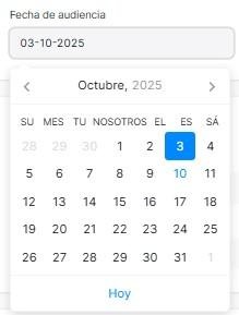 Se selecciona la fecha de audiencia.