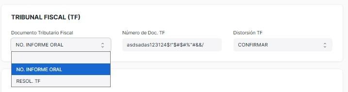 Se selecciona entre Documento Tributario Fiscal.
