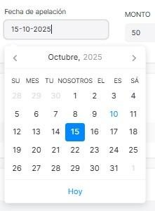 Se selecciona la fecha de apelación.