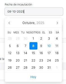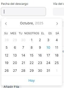 En Fecha del descargo se selecciona la fecha del descargo.