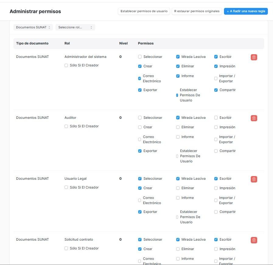 En erp git cuando se ingresa a la página con los permisos necesarios y se selecciona crear nuevo documento SUNAT.
