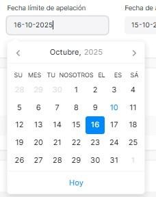 selecciona la fecha límite de apelación.