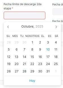 Se selecciona la Fecha límite de descarga 2da etapa.