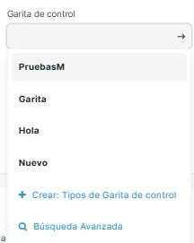 Garita de control : Seleccionar que garita.