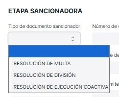 procede a seleccionar entre los tipos de documentos sancionadores.
