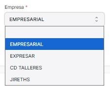 En Empresa se procede a seleccionar la empresa