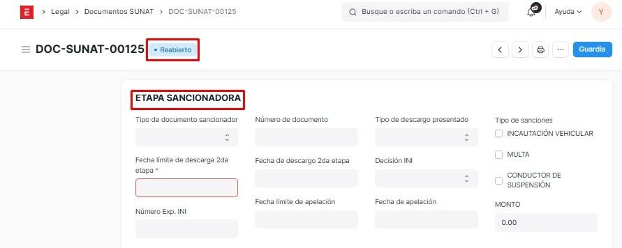 Luego se mostrará el documento con estado reabierto.