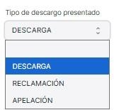 Se procede a seleccionar entre los tipos de descargo presentado.