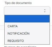 En Tipo de documento se selecciona entre carta, notificación, requisito.