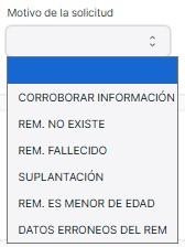 Motivo de la solicitud : Se selecciona el motivo de la solicitud.