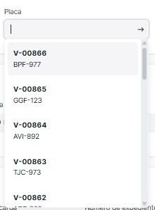 Si se selecciona PLACA aparecerá el apartado de placa para seleccionar la placa.