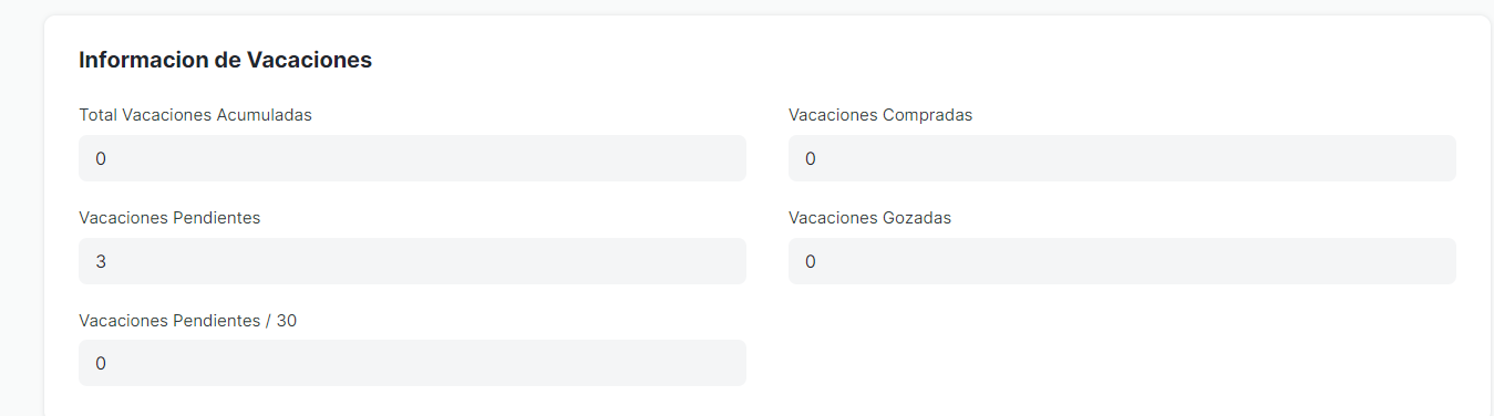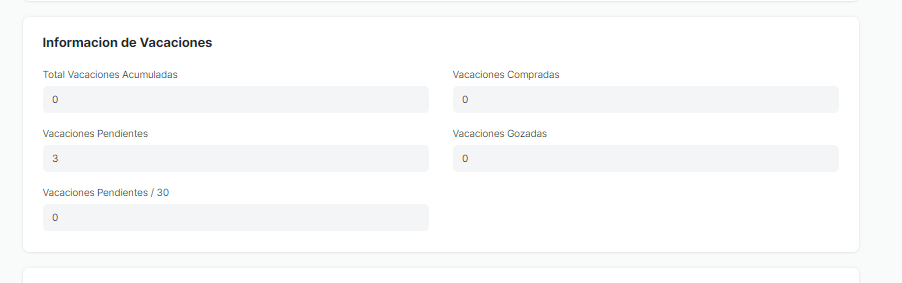 Por ultimo esta el apartado de información de vacaciones que se puede editar