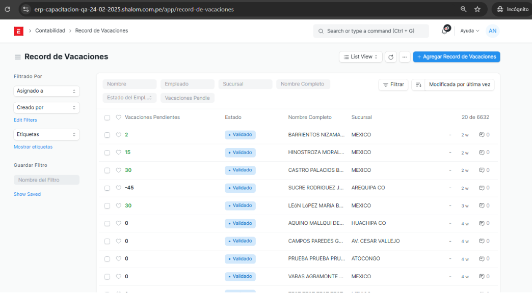 ERP =>CONTABILIDAD => RÉCORD DE VACACIONES