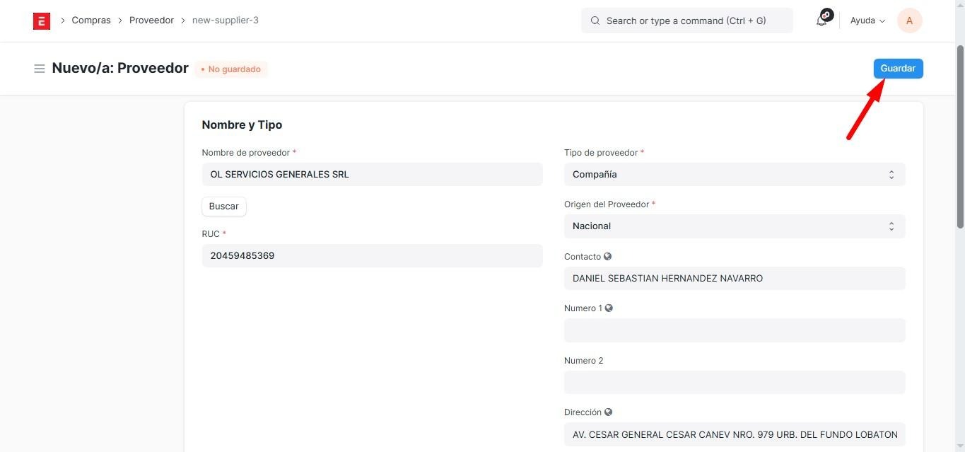 Nombre de Proveedor : Ingresar el nombre completo o razón social del proveedor.