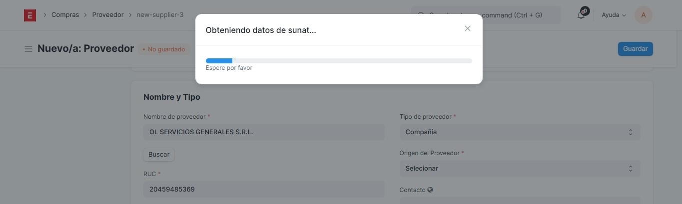 El cual realiza una consulta directa a la SUNAT para validar el RUC ingresado.