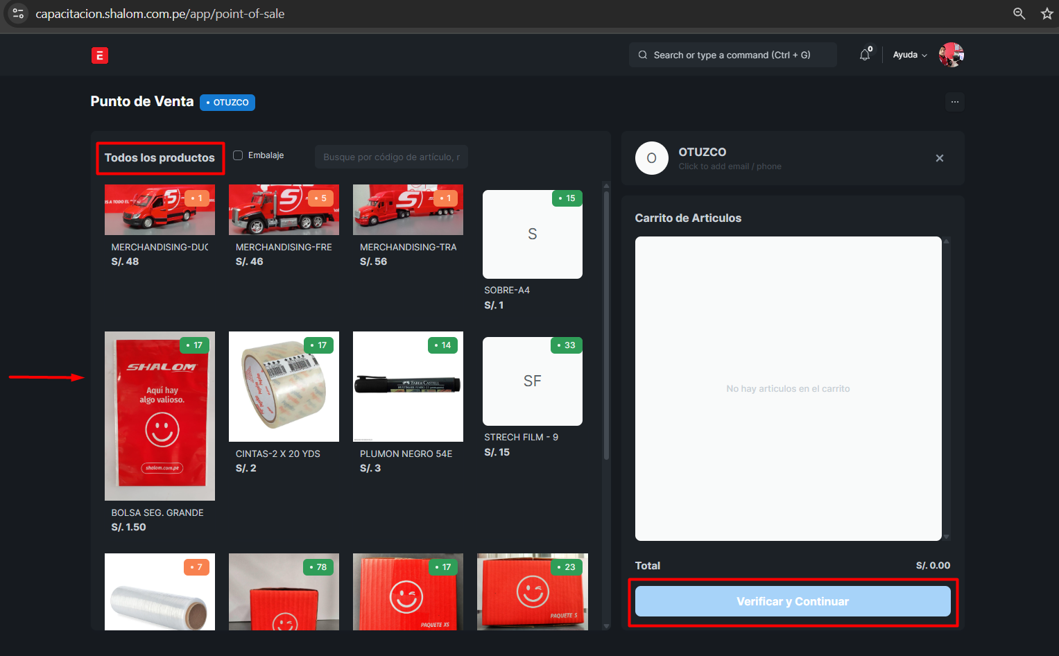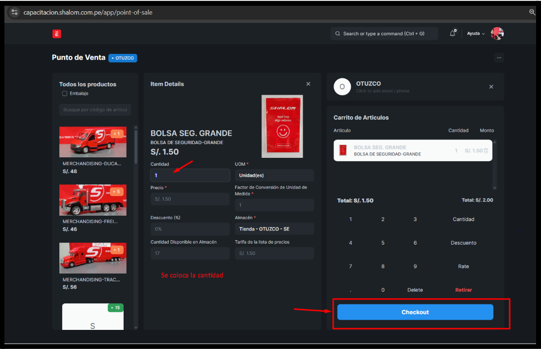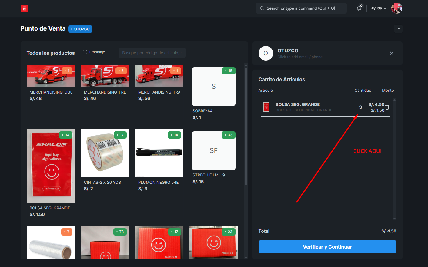 Clic en el “Producto” → confirmar cantidad→verificar y continuar