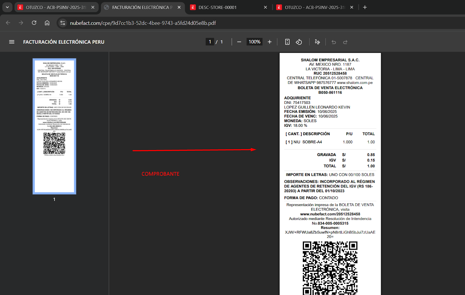 Se registro la venta correctamente. → “Para ver el comprobante clickea aqui” 8