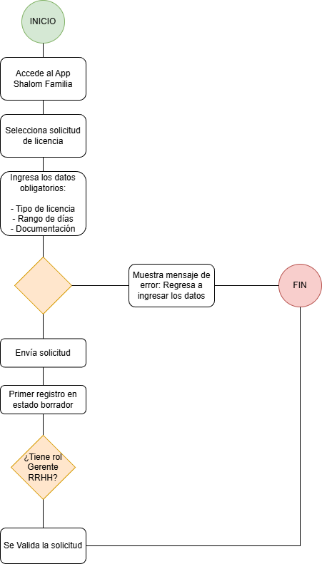 APP SHALOM FAMILIA => Módulo SOLICITUDES => SOLICITUD DE LICENCIA