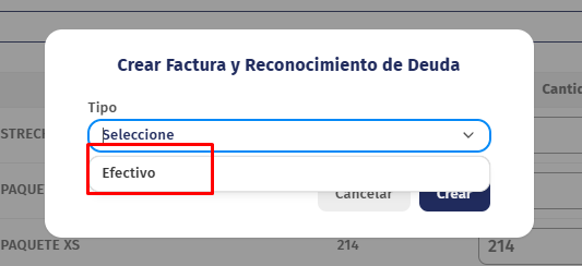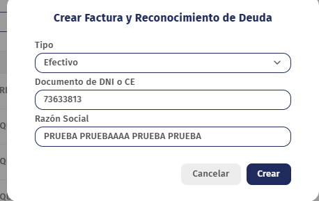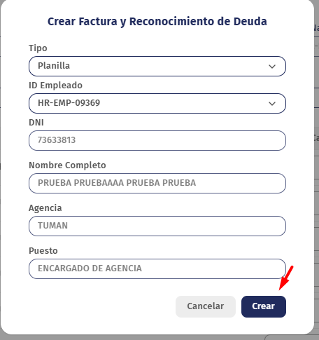CREAR FACTURA Y RECONOCIMIENTO DE DEUDA