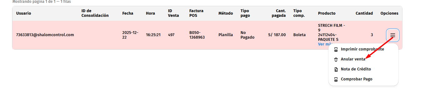 NOTA: Cuando se genera una venta con comprobante de prueba, obligatoriamente se tiene que anular la venta hasta que se genera su nota de crédito anulando el comprobante de la venta.